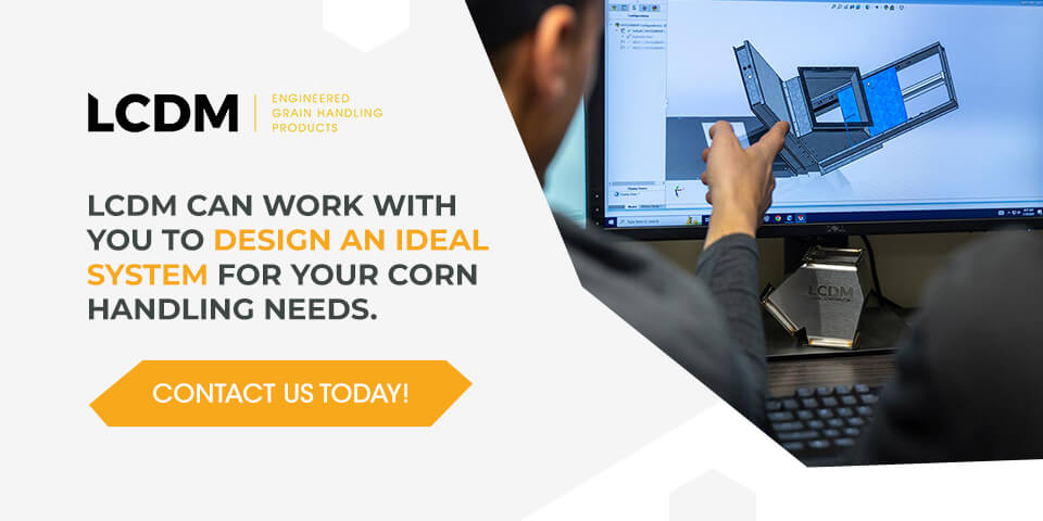 With a custom grain handling system, you can make sure you have the equipment and storage facility you need to extend the life of your corn crop and get the most from your yields. LCDM can work with you to design the system that’s just right for your corn handling needs. Contact us today to get started.